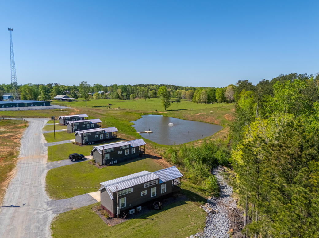 We are a tiny- home community located right off Highway 63 close to Wind Creek State Park in Alexander City, AL! We are an up-and-coming tiny home community that has a few projects in the works to better your experience here! We have a community pool, playground, and more tiny homes coming soon! Our pond is fully-stocked with catfish, and each tiny home has all the amenities to make your stay here feel like home!